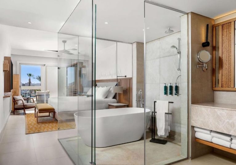 На територията на хотела: Хотелът е уникално проектиран с две отделни зони, крайбрежна и планинска, всяка от които включва различни съоражения и удобства. Предлага разнообразна гама от 11 заведения за хранене и напитки, включително 2 основни ресторанта, 2 ресторанта а ла карт - азиатски и средиземноморски, както и 7 бара, включително нощен клуб и бар само за възрастни, 4 басейна (2 отопляеми), плажни барове, детски клуб, фитнес зала и СПА център както и развлекателни програми.