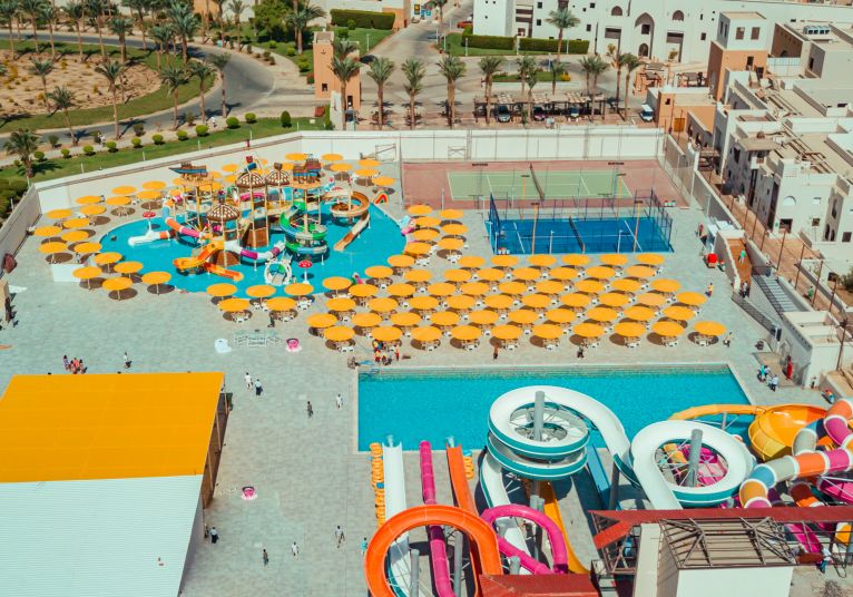 Основен ресторант, 2 а-ла-карт ресторанта (с предварителна резервация, съгласно концепцията на хотела), 7 бара, 2 открит басейн (отопялеми през зимата), аквапарк с 23 пързалки, СПА център в съседния хотел Palace Port Ghalib, магазини.
