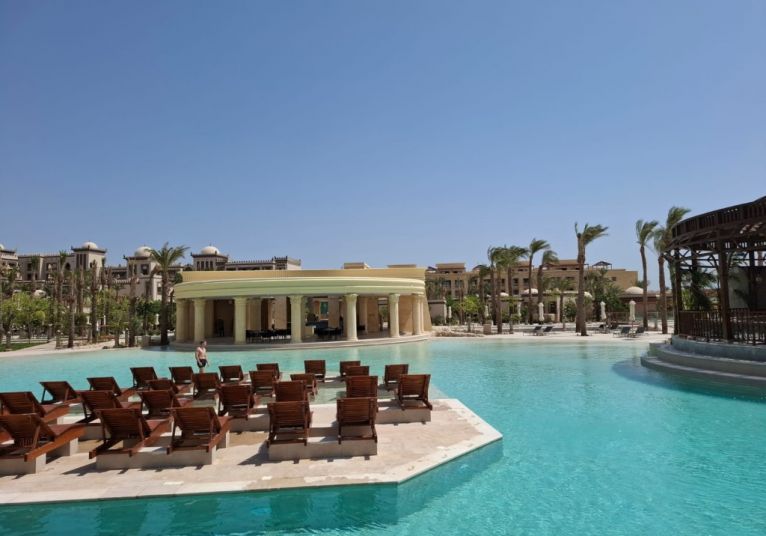 Разположение: Новооткрият през 2025 г. хотел AL KASR 5*, от веригата “Red Sea Hotels” е разположен директно на собствения си частен златист пясъчен плаж в ексклузивния Сал Хашиш, бижуто на Червено море. Центърът на град Хургада е на около 30 км, а летище Хургада е на около 25 км от хотела.