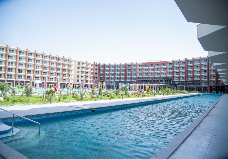 Хотелът се намира на 20 км от летище Хургада, а разстоянието до центъра на града е 15 км. Нов хотел за семеен отдих с аквапарк, разположен на първа линия. Хотелът се състои от 5-етажна основна сграда, две 6-етажни допълнителни сгради и две едноетажни сгради с бунгала. Хотелът е построен през 2025 г.