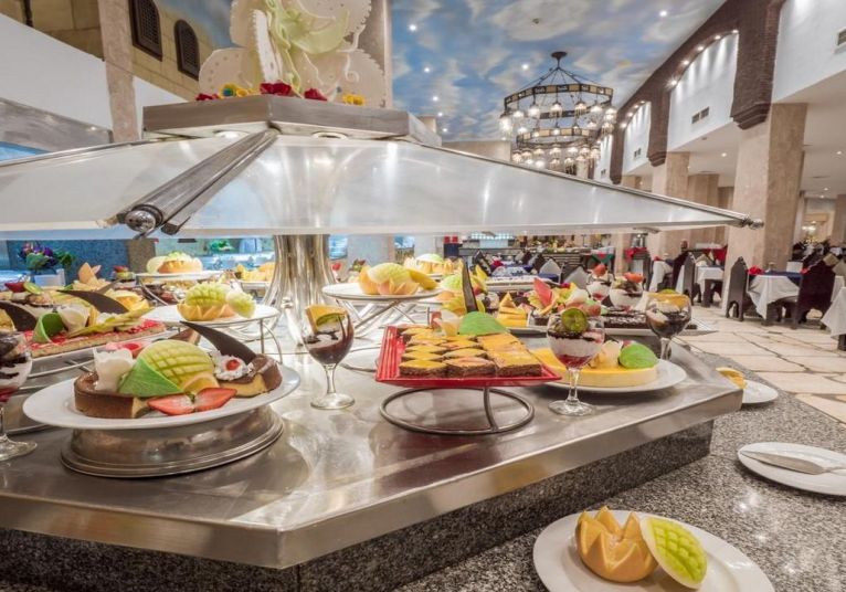 Концепцията е All Inclusive – закуска, обяд, вечеря на блок маса, леки следобедни закуски, сладкиши, местни алкохолни и безалкохолни напитки в определени часове от деня. Хотелът разполага с основен ресторант и няколко а ла карт ресторанта (италиански, ориенталски и рибен), както и разнообразни барове – лоби бар, бар на плажа, бар при басейна.