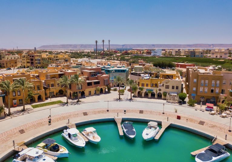 Намира се на 40 км от летище Хургада, на 21 км от центъра на Хургада, в района на пристанище Абу Тиг в Ел Гуна, на брега на морето.