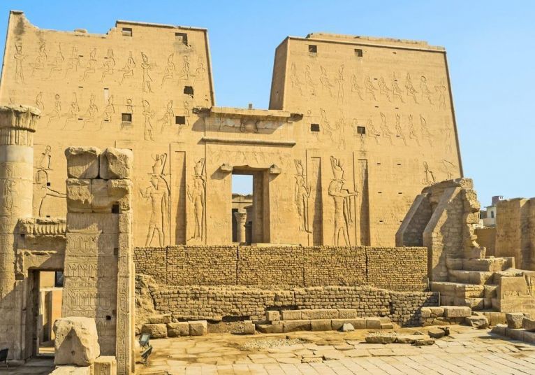 Строителството на Храма край Едфу е започнато през 237 г. пр.н.е., а е завършен двадесет години по-късно при династията на птолемеите в чест на Хор. Според преданията, този каменен монумент е построен на мястото, където се е състояла митичната битка между Хор И Сет. Истината обаче е, че това е последния от поредицата издигнати храмове тук като е завършен при Птолемей 12-и.