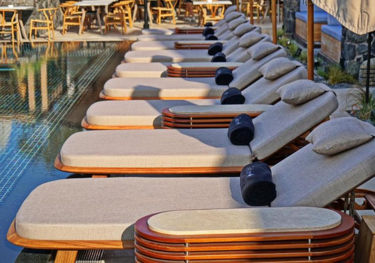Джуниор суит със собствен басейн и тераса - 35 кв. м. Стаята се отличава със същия минималистичен дизайн като другите типове стаи, заедно с малък басейн, разположен на частната тераса.