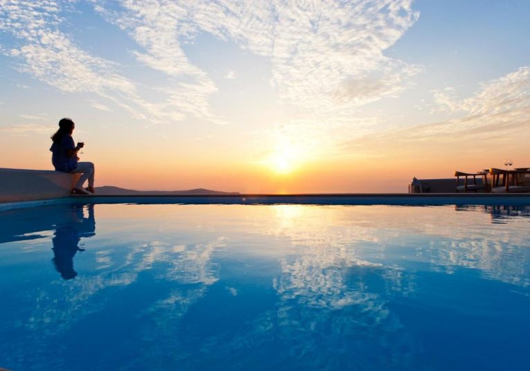 Хотел Gold Suites се издига сред зашеметяващата вулканична природа на Санторини в края на Имеровигли. Чудодейно кацнал на най-високата точка на калдерата, приблизително 300 метра над морското равнище, Имеровигли е тихо зашеметяващо село, погълнато от вулканичното величие на Санторини.