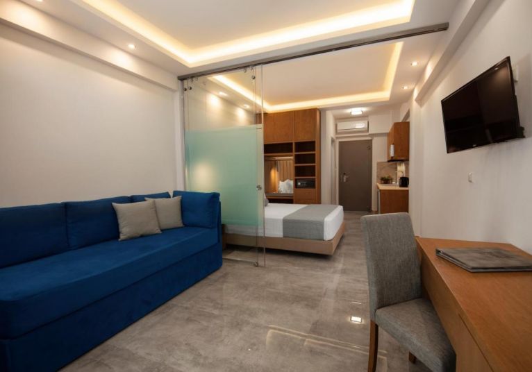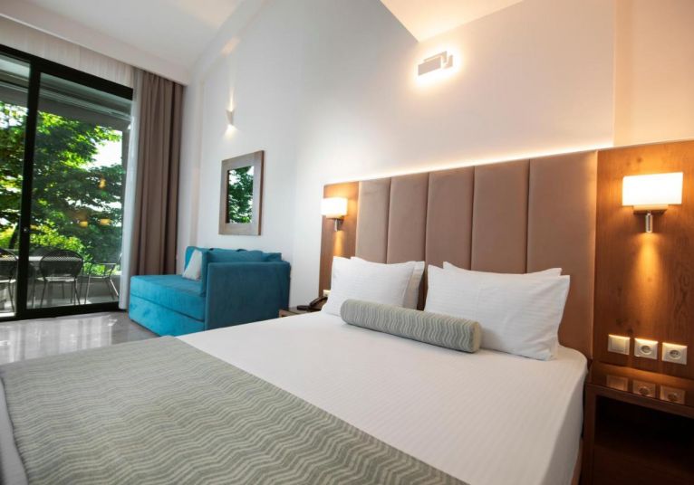Apartment 2-Bedrooms (~ 44-48 кв.м) Намира се на приземния етаж (приземен етаж). Дневна с кухня, 2 отделни спални, двойно легло и 2 единични легла.