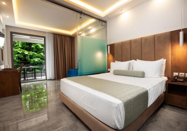 П-в Ситония, на 350 м. от центъра на селище Метаморфоси, на 6 км. от Никити, на 80 км. от летище "Македония" в Солун. Нов хотел, построен през 2016 г.