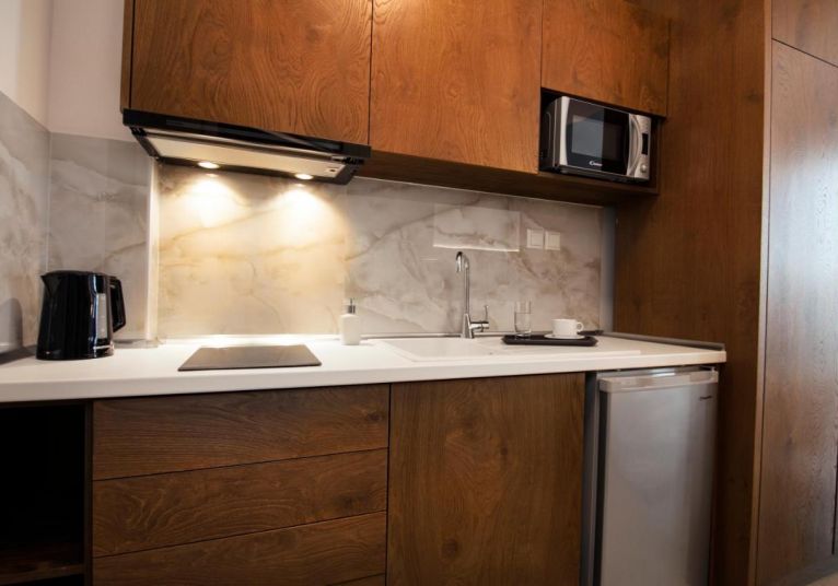 В стаите са на разположение: кухня (електрическа печка, фурна, тостер, кафе машина, чинии), климатик, сателитна телевизия (собствен сателитен телевизор, около 1000 канала), климатик, 2 телевизора с плосък екран (32 и 19 инча), анатомични матраци CocoMat, сейф (безплатно), хладилник, душ, сешоар, везни, Wi-Fi интернет (безплатно), веранда. При пристигане - бутилка вино.