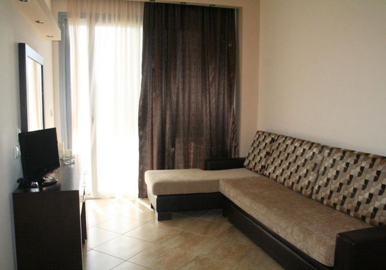 Apartment(~ 33 кв.м) Всекидневна с кухня (готварска печка с 3 котлона, фурна, микровълнова) и голям сгъваем ъглов диван (2.5x2), спалня с двойно легло.
