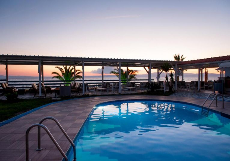 Хотелът е разположен на 100 км. от Солун, в курорта Ханиоти, в близост до центъра на курорта, на 60 м. от хубав пясъчен плаж. Реновиран през 2007 г.