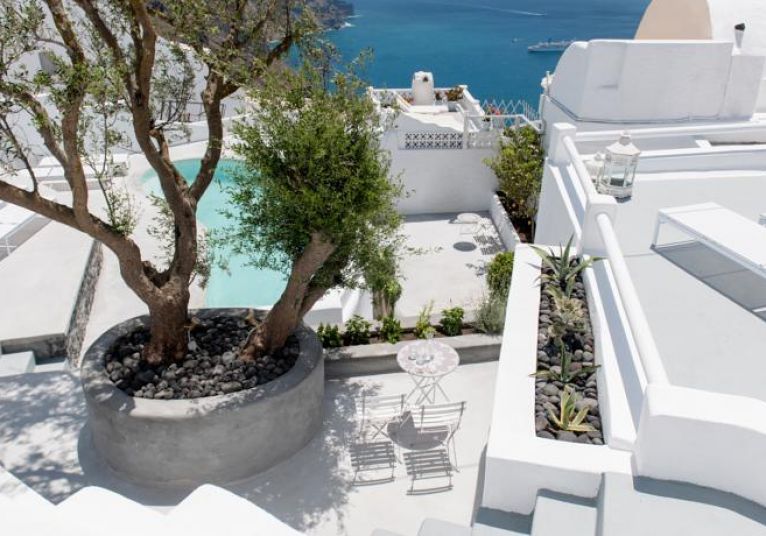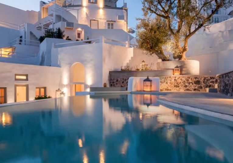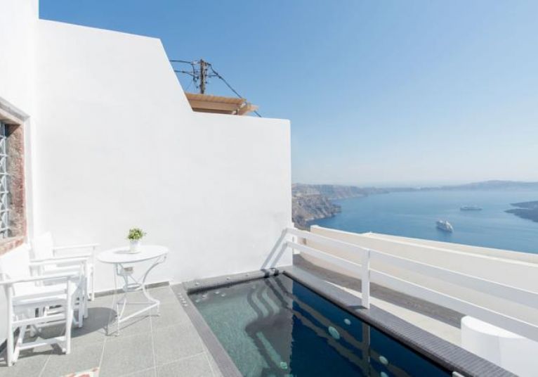 От хотела се разкрива прекрасна гледка към Калдерата на Санторини. Хотелът се намира в селцето Имеровиги на 2 км. от градовете Фира и Ойа.