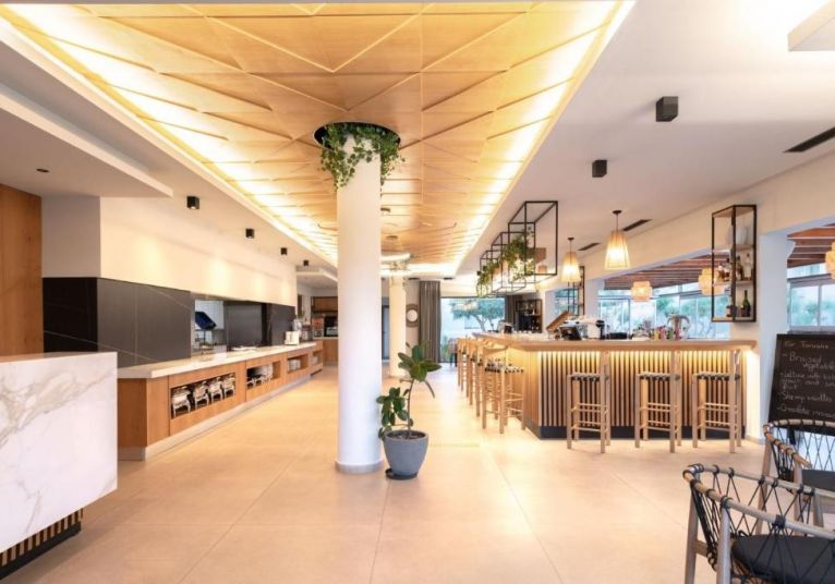 Модерен хотел за почивка на море. Гостите могат да се насладят на комфортни стаи, плувен басейн и местна кухня.