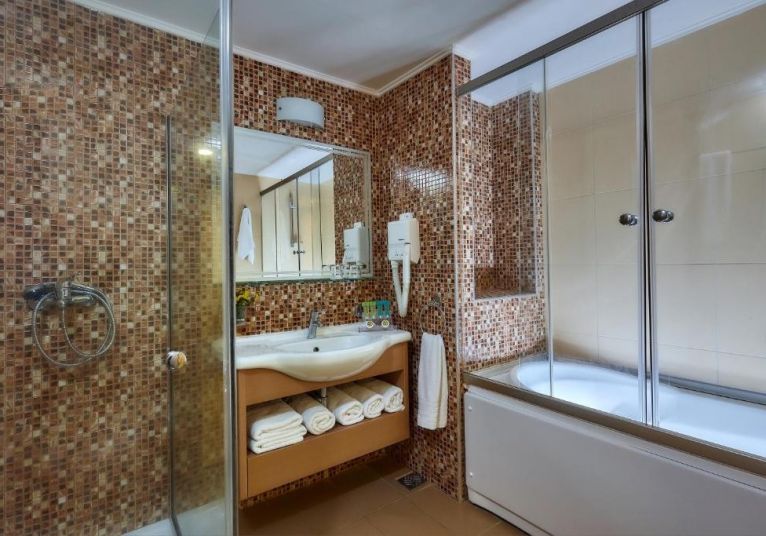 В стаите: Стаята разполага с телевизор, климатик, сейф, хладилник, душ, радио, сешоар, безплатен Wi-Fi, балкон или тераса, както и смяна на спално бельо и почистване.