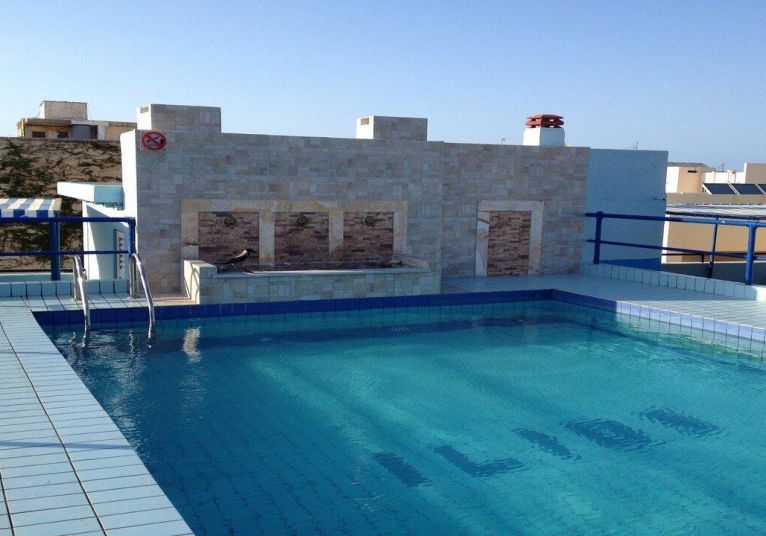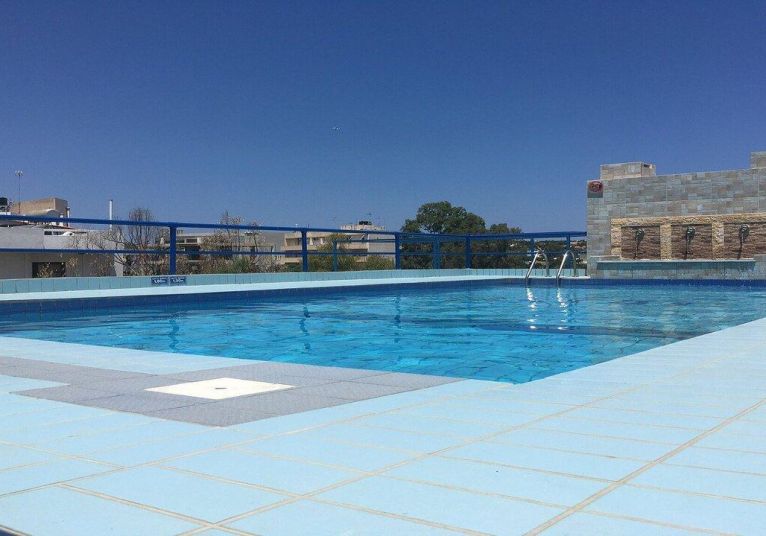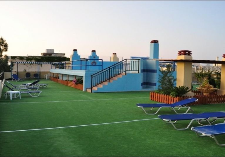- Басейн на покрива с шезлонги и чадъри (безплатно)