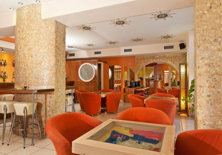 На територията на хотела има кафе-бар и салон за закуска.