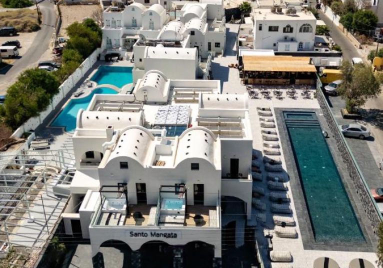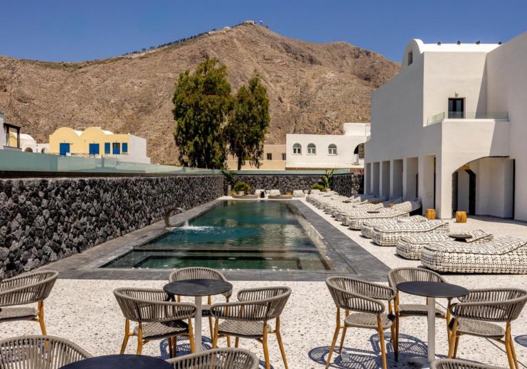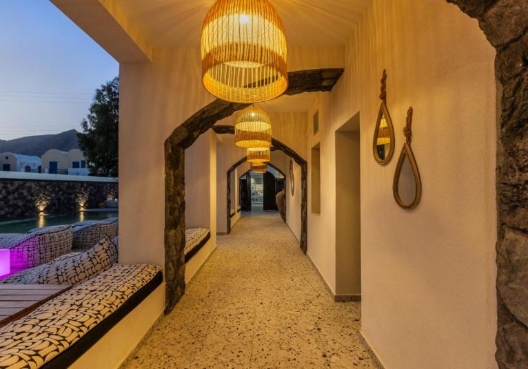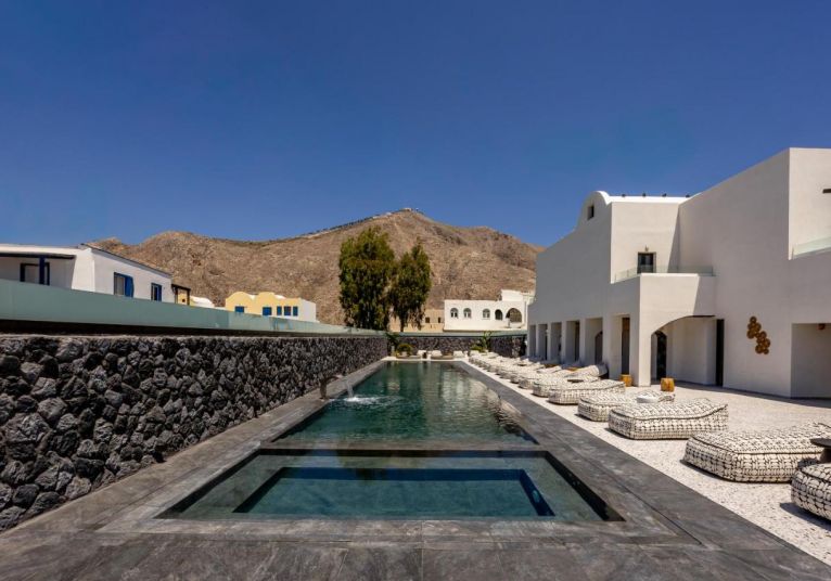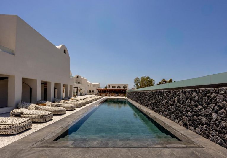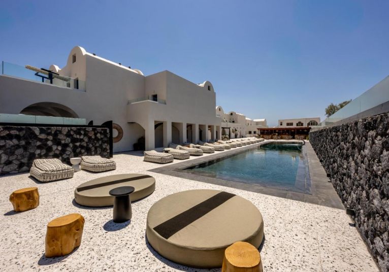 Хотелът се намира на 300 метра от плажа, в известния курорт Периса, на 12 километра от столицата на острова Фира. Летището на Санторини се намира на 10 км. Хотелът отваря врати през 2023 след пълна реконструкция.