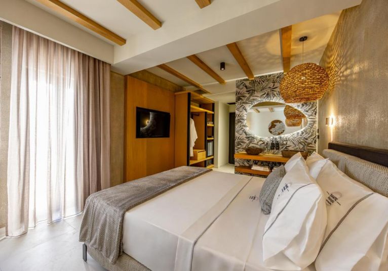 Хотелът разполага с 24 бутикови стаи и сюити, с модерно обзавеждане и традиционни цикладски елементи. Всяка стая предлага климатик, телевизор, телефон, луксозно спално бельо от ''GUY LAROCHE, мини бар, сешоар, сейф, сет за чай и кафе, кафемашина Nesspresso, безплатен Wi-fi, халати.