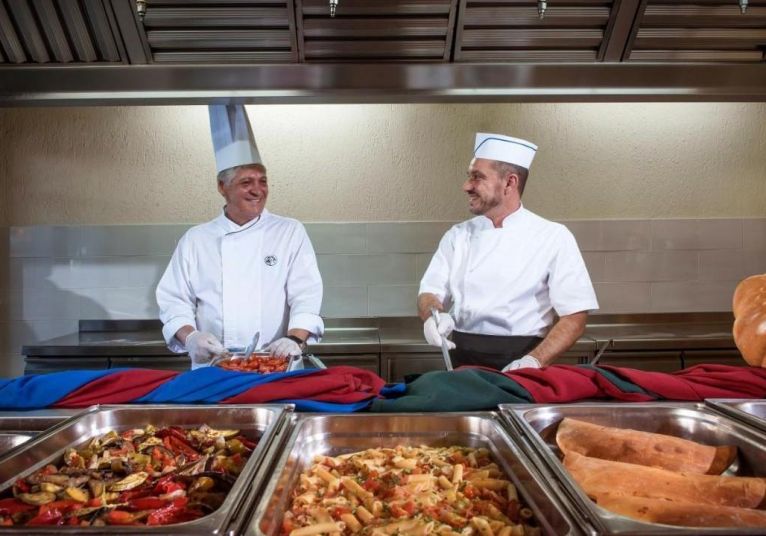Ресторантът на хотела е с класически интериор и предлага обяд и вечеря на шведска маса.