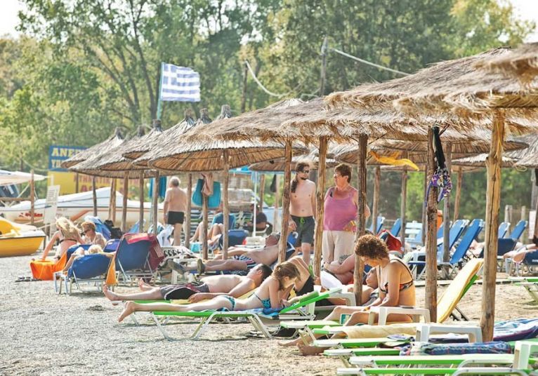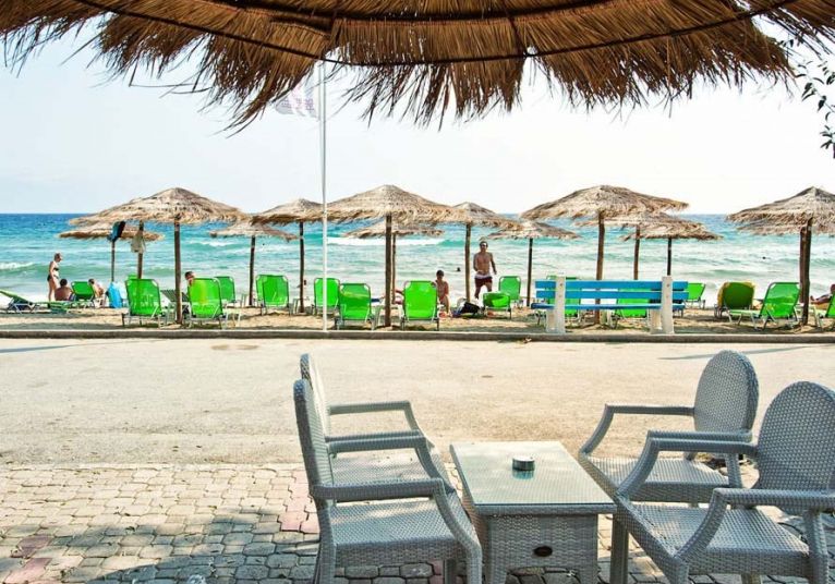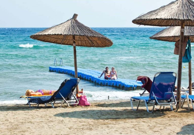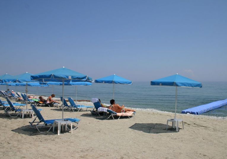 Плаж - Пясъчно-чакълест до хотела. Плажни кърпи, чадъри и шезлонги срещу заплащане. Душове и съблекални на плажа.
