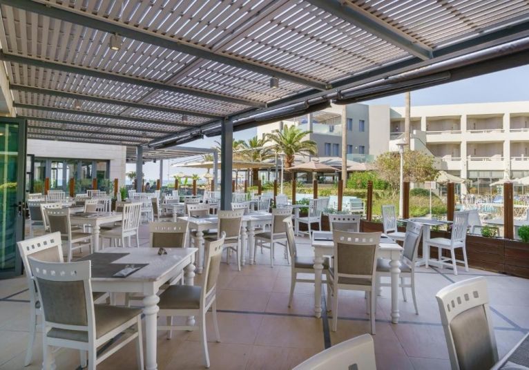 Ресторант Ariadne сервира богата вечеря на шведска маса на терасата си. Brasserie Panorama сервира закуски и обяд с изглед към морето и басейна.