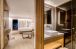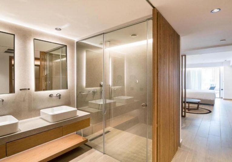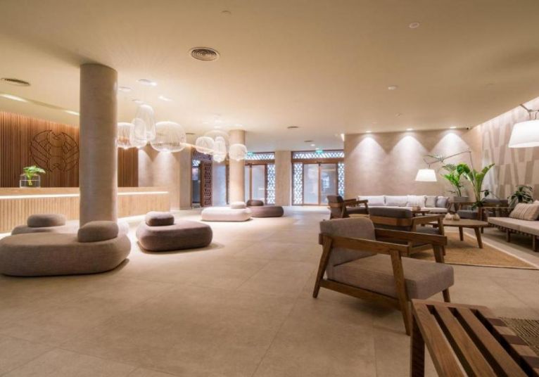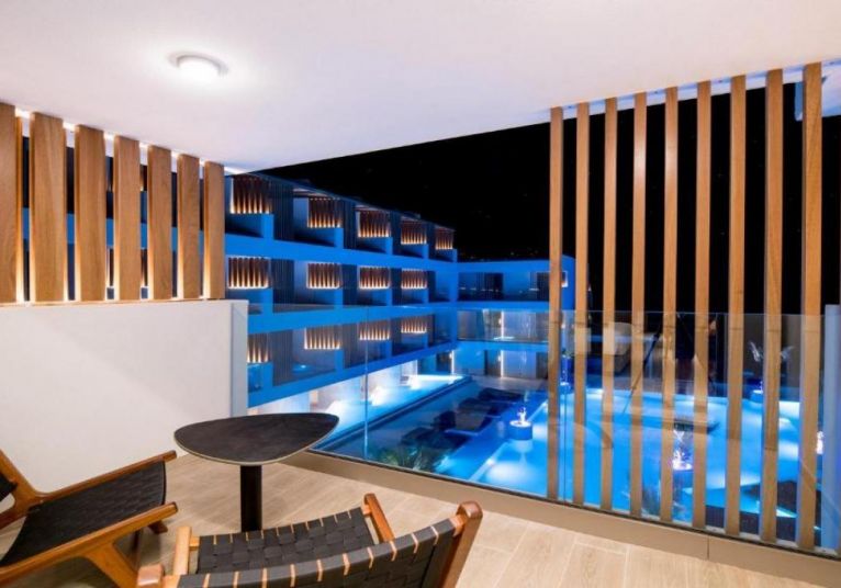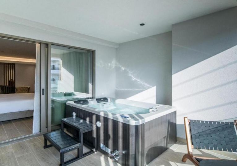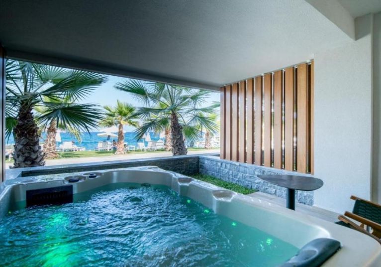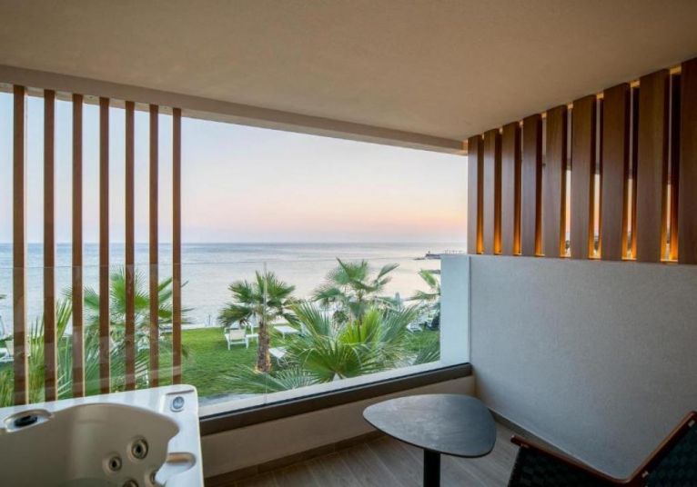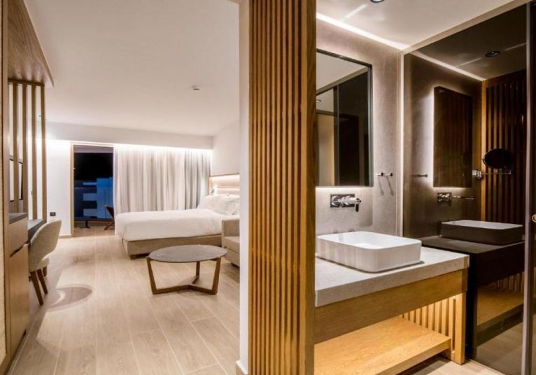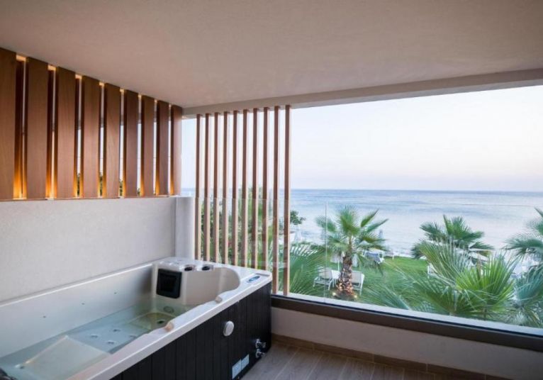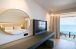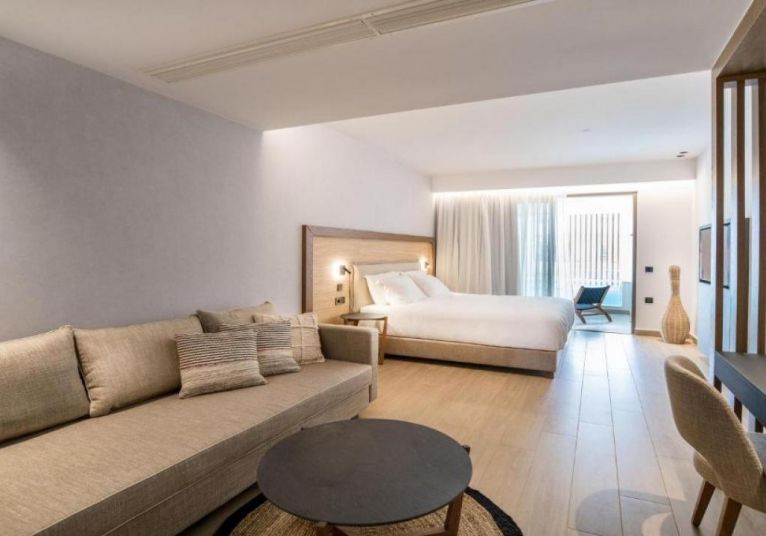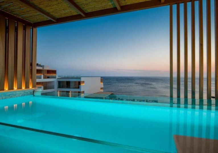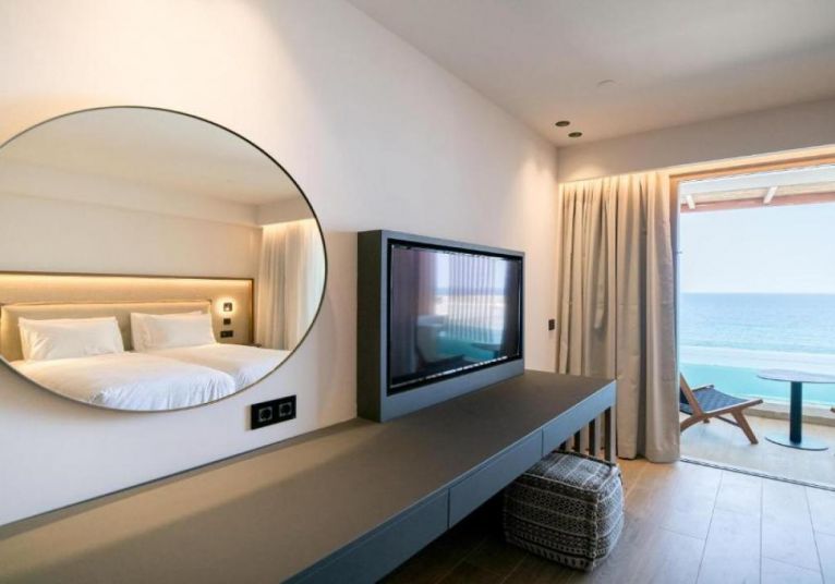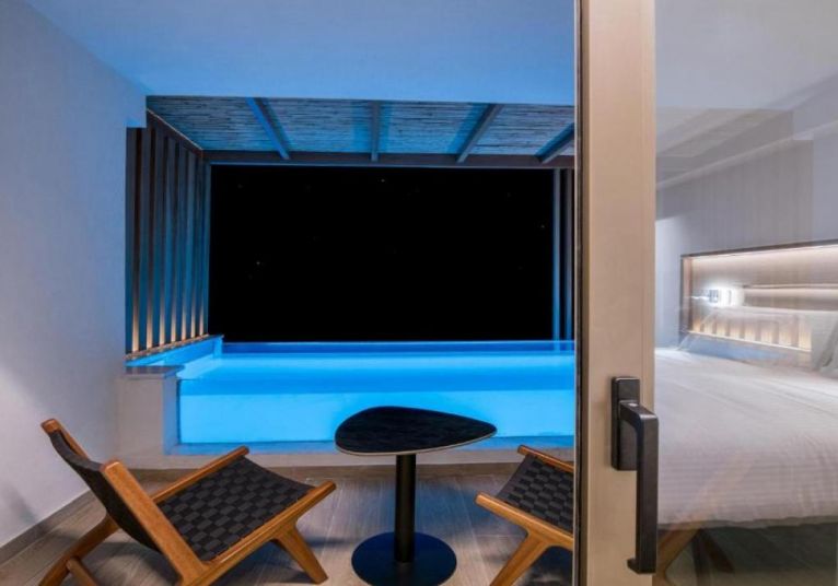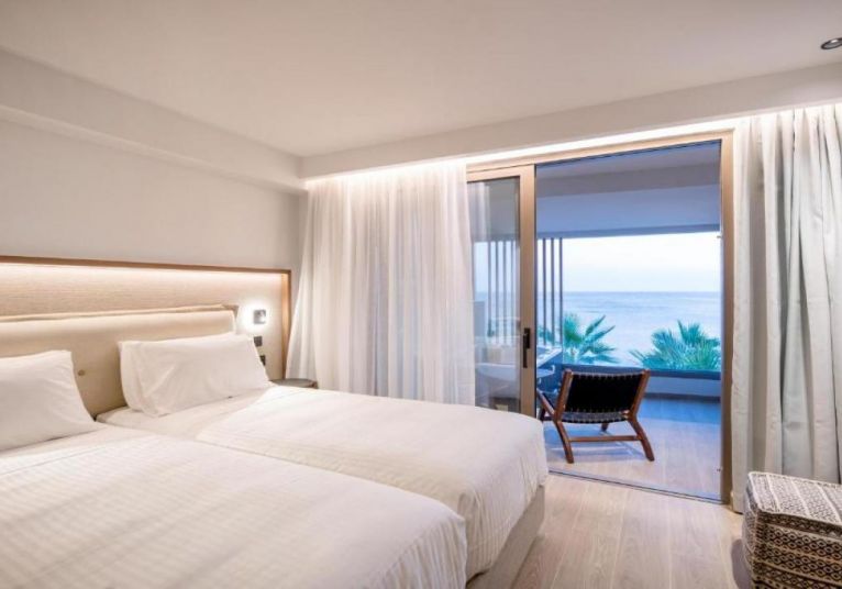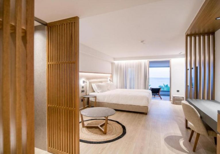 Стаите и суитите са оборудвани с климатик, сателитна телевизия и хладилник. Някои стаи са с директен достъп до общ басейн. Мезонетите включват собствен басейн с хирдомасжна вана.Всички помещения за настаняване имат балкон или тераса с изглед към Критско море или градините на хотела.