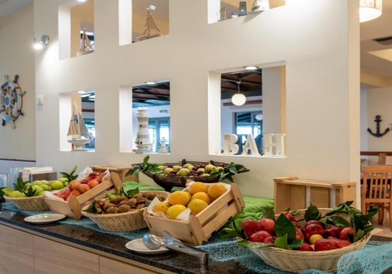 Снек-бар Thalassa предлага леки ястия и напитки край морето. Всеки ден в ресторант Alexander до басейна се сервира закуска на шведска маса. За обяд и вечеря могат да се поръчат критски и международни ястия. Предлага се и вегетарианско, безглутеново и детско меню. При заявка може да се осигури бебешко столче за хранене.
