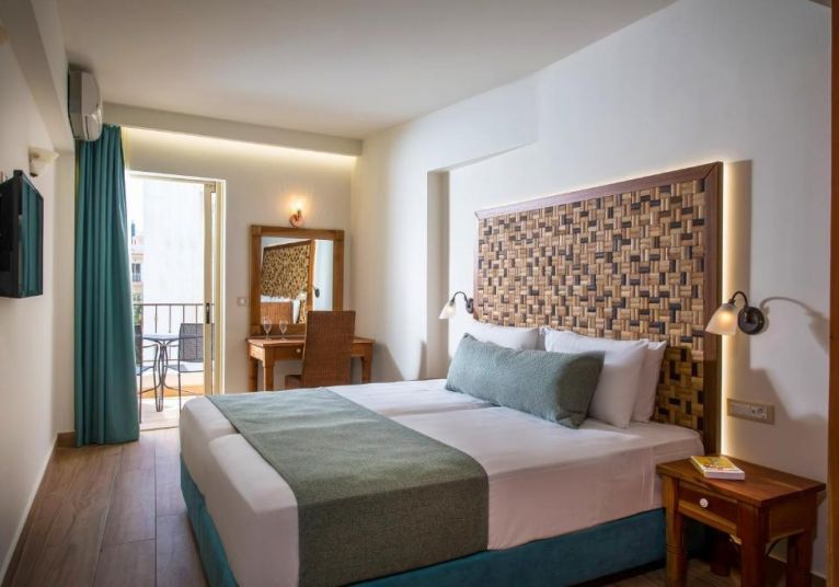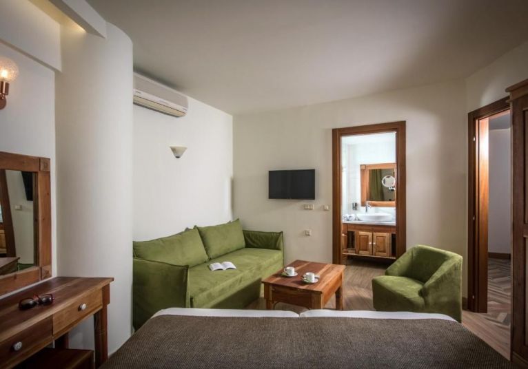 Superior Suite - 25 -27 м2, гледка към басейна, градината или града. Климатикът е включен в цената, за да се осигури максимален комфорт. Удобства - Балкон, дъска за гладене, отопление, събуждане по телефона, гардероб/дрешник, телевизор, телефон, сателитни канали, сейф, кърпи, спално бельо, достъп с ключ / достъп с карта за достъп, хладилник, електрическа кана, градински мебели, баня с душ, сешоар.