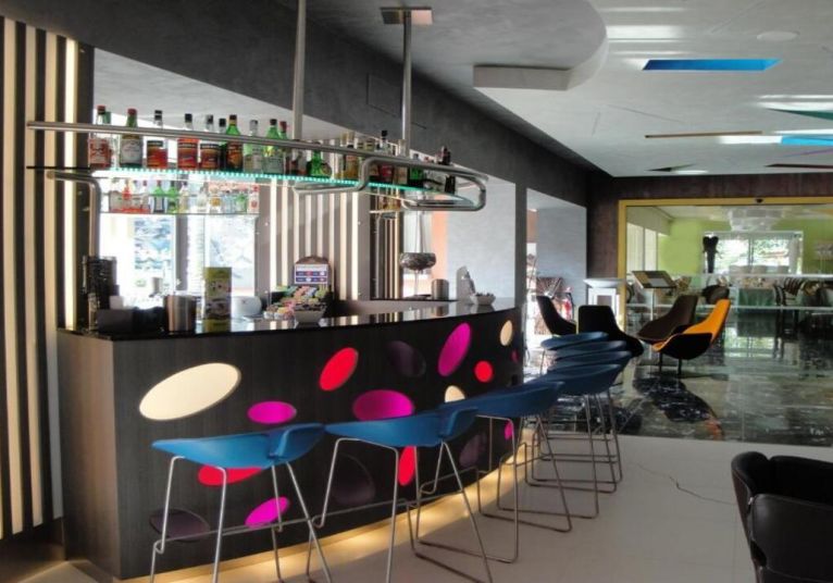 Лоби бар с уютна атмосфера, предлагащ разнообразие от напитки