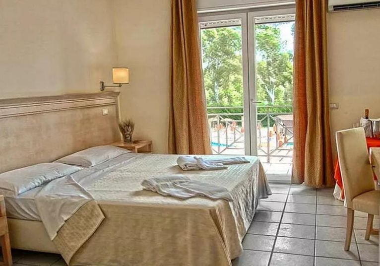 Хотелът предлага на своите гости 146 елегантни и удобни стаи, които могат да настанят от двама до петима души, разположени в два корпуса, в двуетажни сгради с асансьори. Всички стаи са оборудвани със самостоятелен санитарен възел, автоматичен климатик, телефон с директна линия, сателитна телевизия, бар-хладилник (зареждане при поискване), сешоар и сейф. Всички стаи имат малка тераса, оборудвана с маса и столове, която гледа към хълма или басейна.