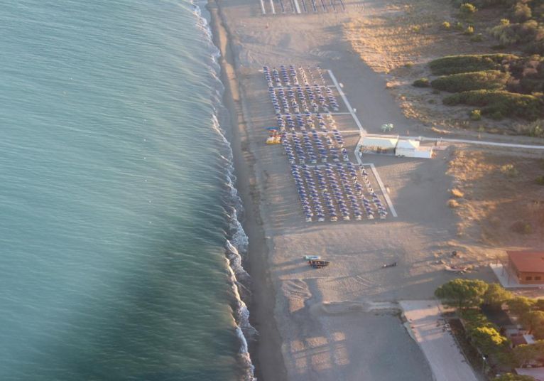 Намира се на 250 метра от хотела, може да бъде достигнат по пътеки през красива борова гора, където ще се насладите на девствената природа на Йонийско море. На разположение на гостите са 1 чадър и 2 шезлонга за стая.