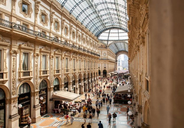 Накрая ще се потопите в магията на галерията Виктор Емануил II - елегантна покрита търговска галерия, наричана "салона на Милано", където историята и луксът се срещат под един покрив от стъкло и желязо.