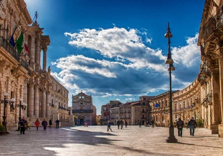 Площад Ил Дуомо, където се намира великолепната катедрала и църквата „Света Лучия“, в която се съхранява оригиналът на прочутото платно на Караваджо - „Погребението на Света Лучия“