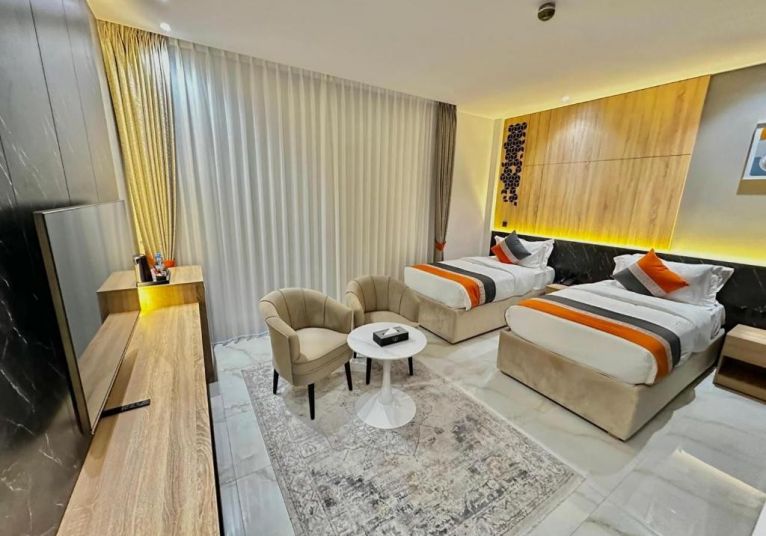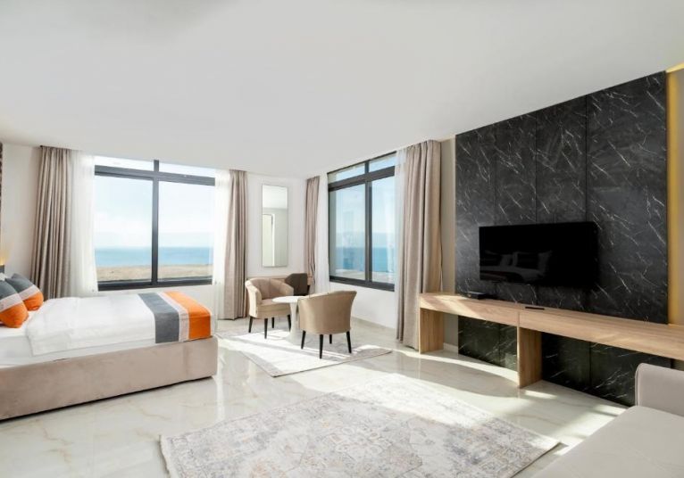 Комфортно настаняване: Diamond Palm Hotel & Resort в Ал Бурдж предлага семейни стаи с изглед към морето или басейна. Всяка стая разполага с климатик, самостоятелна баня и модерни удобства.