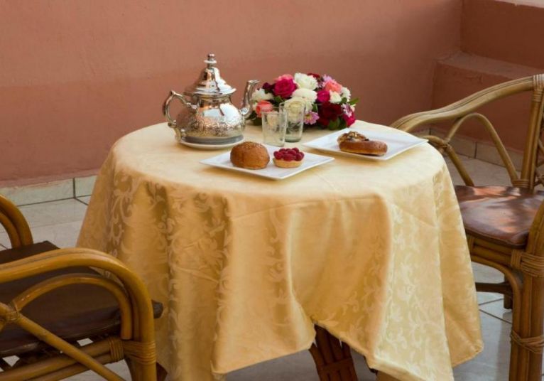 открит плувен басейн, слънчева тераса, ресторант, лоби зона и 24-часова рецепция. Хотелът е подходящ както за кратък престой, така и като база при обиколни програми в Маракеш.