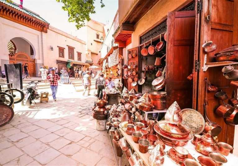 Полудневна обиколка на Фес, включваща посещение на Медината Fez el Bali – огромна лабиринтна мрежа от криволичещи алеи, обградени от древни стени. Въпреки, че достъпът на автомобили не е разрешен, суматохата, шума и виковете се носят навсякъде. Миризмата на кожа, деликатния аромат на ориенталски парфюми, барбекю и сладкиши ще ви потопят дълбоко в атмосферата на този имперски град. Посещение на фонтана Nejjarine - най-известният от мозаечните фонтани на Медината, който се намира в традиционен дърводелски квартал, където навсякъде във въздуха се носи аромат на кедрово дърво.