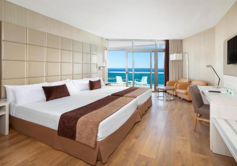 Superior Double Room with Sea View – Максимално настаняване до 4-ма души. Гарантират настаняване на горните етажи (от 11 до 14), плодове и вода като подаръци за добре дошли, халати и чехли, комплект за кафе и чай и ежедневно зареждане на вода.