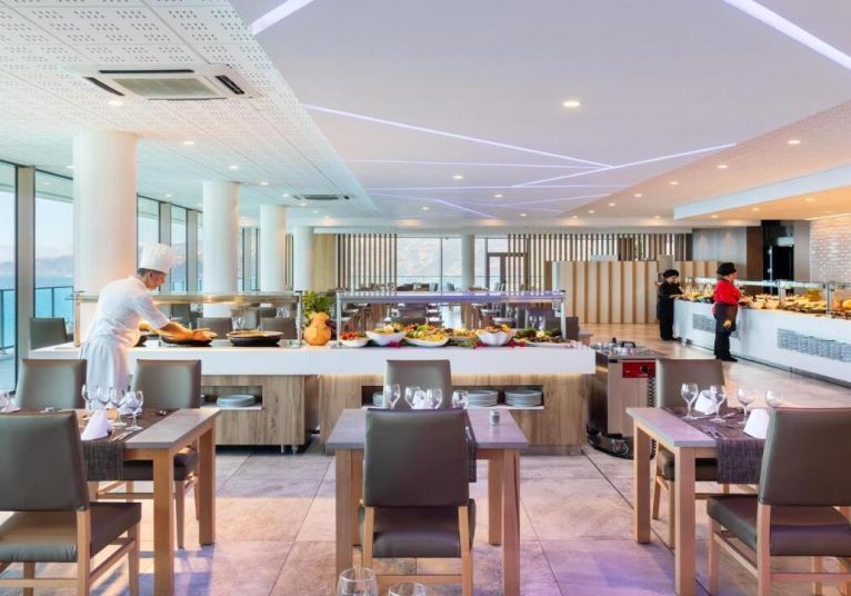Restaurante Buffet – Шоу Кукинг. Необходимо е официално облекло на вечеря. ЗАКУСКА: 7.30-10.00 ч.; ОБЯД: 13.00-15.00 ч.; ВЕЧЕРЯ: 18.30-21.30 ч. (през зимата) & 19.00-22.00ч. (през лятото).
