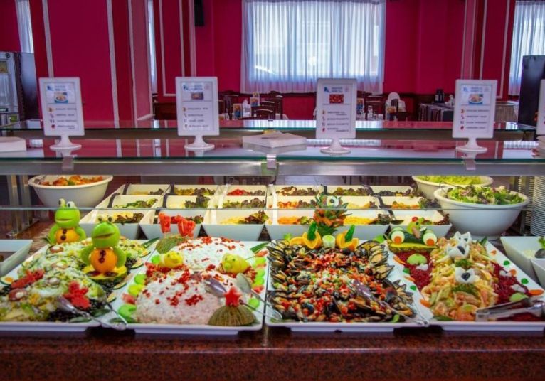 Основният ресторант предлага богата шведска маса с национални и международни ястия, като менюто се обновява на всеки две седмици. Ресторантът предлага и тематични вечери в определени дни.
