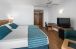 Премиум стая - Премиум стаите предлагат специални услуги като кана за чай и кафе, минибар, сейф с място за лаптоп, балкон и гледка към морето - 30 м², халати и чехли,вода и сладки за добре дошли, климатик, сейф (срещу заплащане), огледало в цял ръст, сешоар, телефон, телевизор със сателитни канали безплатен Wi Fi,./максимален капацитет 3 души