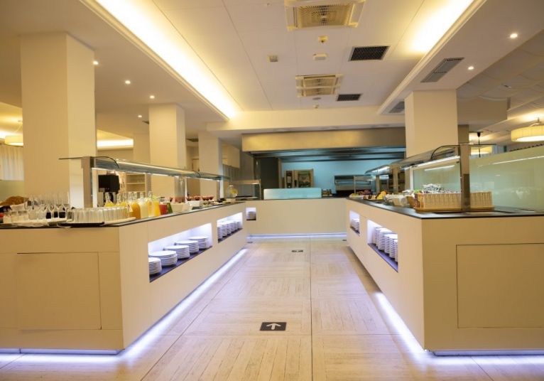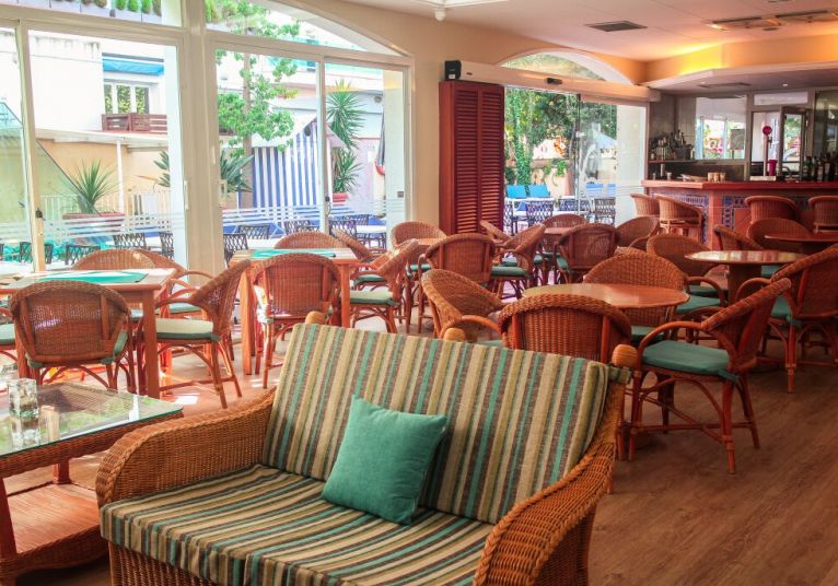 На територията на хотела: Външен басейн и инфинити басейн на покрива на хотела (безплатен за клиенти Клуб Селект или срещу допълнително заплащане 35 евро на ден, с включени напитки). Бюфет- ресторант, който предлага интернационална и средиземноморска кухня, кафе-бар Лес Палмерес, където можете да се насладите на типични тапас и коктейли. Барът до основния басейн е отворен от 09:00ч до 00:00ч и също предлага коктейли, междинни хранения и алкохолни и безалкохолни напитки.