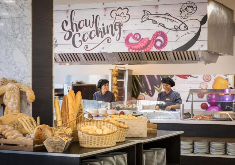 Ресторантът на шведска маса сервира каталунски, испански и международни ястия. Има и бар, а вечерните забавления включват музика на живо.