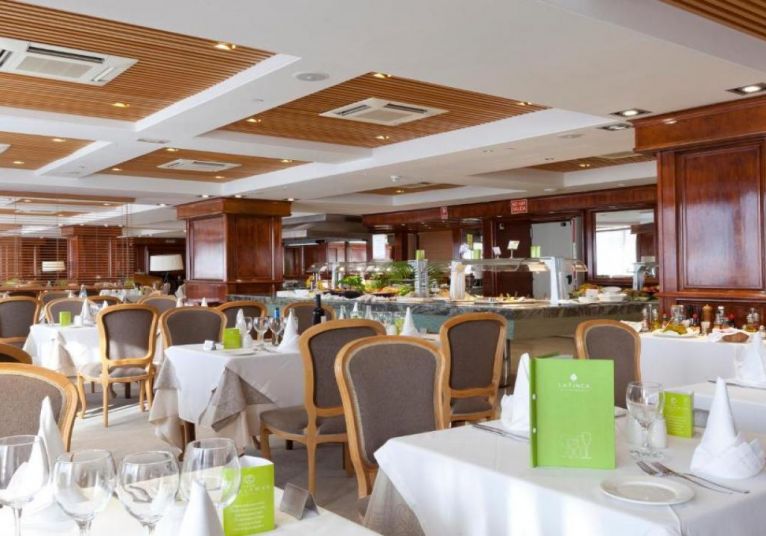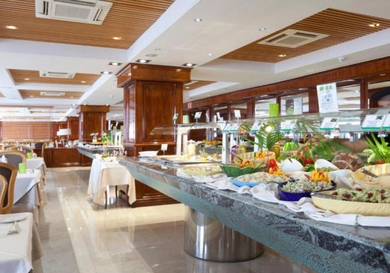 Хотелът разполага с основен ресторант със закуска и вечеря на шведска маса, предлагащ разнообразие от международна и испанска кухня. Организират се тематични вечери.