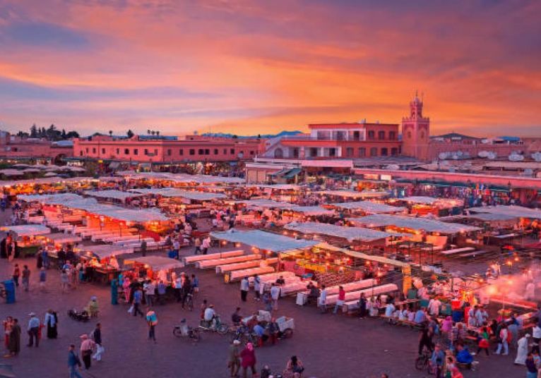 Обзорен тур на Маракеш включващ джамията Кутубия – отвън, най- голямата джамия в Мароко. Посещение на площад Джема Ел Фна, където шоуто никога не спира – хора, гълтащи огън, разказвачи на приказки, дресьори на маймуни, змиеукротители и всякакъв вид артисти.