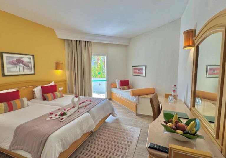Хотелът разполага с 298 стаи, разположени в четириетажна сграда с асансьори - Standard Room (30-40 кв.м) с изглед градина или басейн.