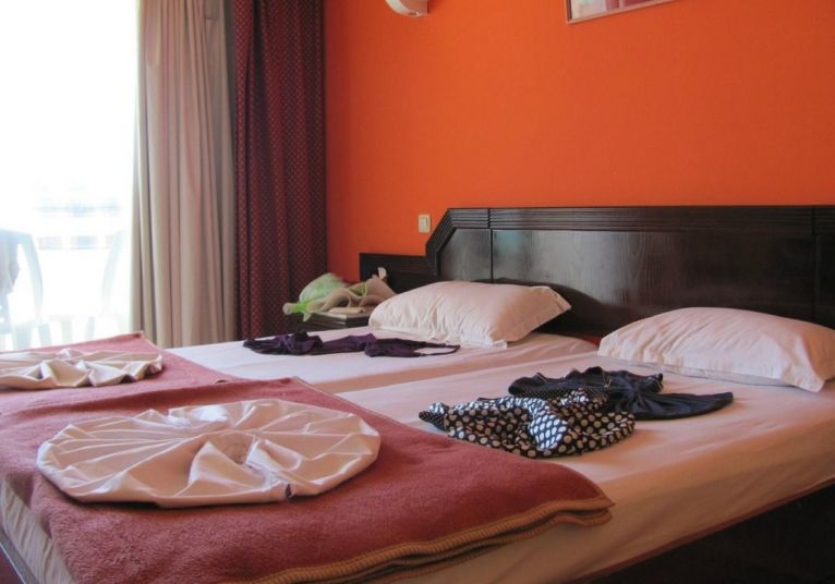 В стаите: Хотелът разполага с общо 330 стаи, разположени в четириетжна сграда с 2 асансьора - Standard Room (24-26 кв.м), Sea View Room (24-26 кв.м), Family Room (26-28 кв.м с една спалня), Superior Family Room (36-38 кв.м с две спални, отделени с врата). Всички стаи са оборудвани с климатик, телевизор, мини бар (ботилирана вода в деня на настаняване), баня с душ/вана, сешоар, сейф, балкон/тераса. Почистване на стаите - всеки ден.