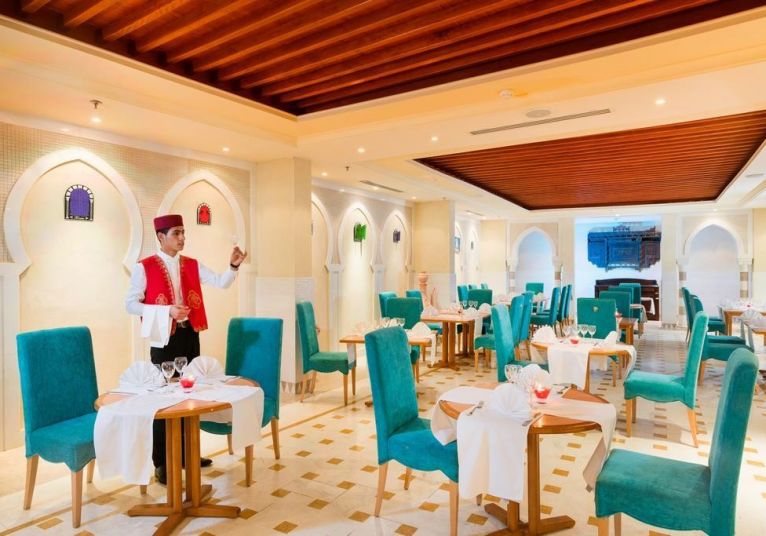 На територията на хотела: Основен ресторант Marhaba, а ла карт ресторант Bella Vita (платен, 1 безплатнo посещениe за престой при предварителна резервация), а ла карт ресторант Carthage с тунизийска кухня (платен, 1 безплатнo посещениe за престой при предварителна резервация), а ла карт ресторант Pecheur (платен, 1 безплатнo посещениe за престой при предварителна резервация), плажен ресторант (срещу заплащане), лоби бар с тераса, бар в басейна, плажен бар, лаундж бар Les Orangers, външен басейн с детска секция, вътрешен басейн, външен басейн с морска вода, 24 часова рецепция, Таласо център, сувенирен магазин, обмяна на валута, анимация, музика на живо.