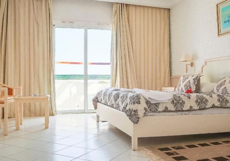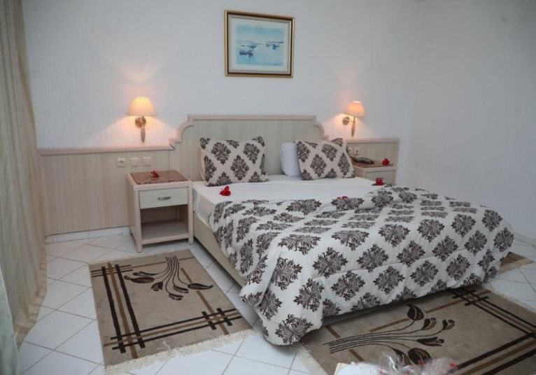 В стаите: Хотелът разполага с 223 стаи, разположени в пететажна сграда с асансьори - Standard Room и Sea View Room. Всички стаи са оборудвани с климатик, телевизор, баня с душ/вана, минибар (на запитване, платен), балкон (не във всички стаи). Почистване на стаите - всеки ден.