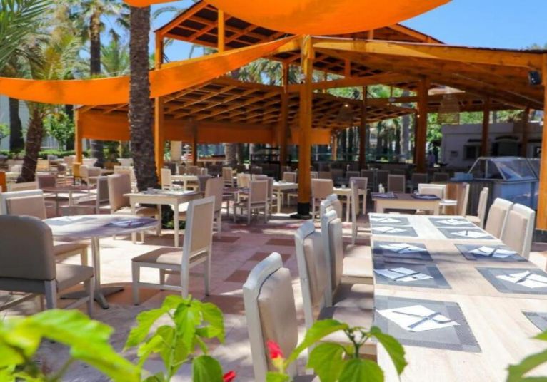 Основен ресторант Oasis, барбекю ресторант Neptune, а ла карт вечеря с италианска и рибна кухня (срещу заплащане, едно безплатно посещение за престой, след предварителна резервация), а ла карт ресторант Le Baron с тунизийска кухня (срещу заплащане, едно безплатно посещение за престой, след предварителна резервация), лоби бар, бар басейн Tiki, плажен бар, американски бар (срещу заплащане), диско бар, мавританско кафене, анимация, външен басейн, закрит басейн (отопляем през зимата), конферентна зала, 24 часова рецепция.