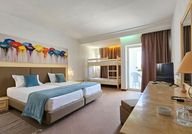 Стаи: Хотелът разполага с 291 стаи, 194 стандартни стаи (включително 151 стаи с изглед към морето и 43 стаи с изглед към градината), 66 свързани стаи (включително 36 стаи с изглед към морето и 30 стаи с изглед към градината), 24 четворни стаи и 7 джуниър апартамента. Стаите разполагат с кърпи, телевизия, тераса и интернет-безплатен.