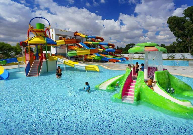 Основен ресторант, лоби бар, бар при басейна, бар при водните пързалки, бар и ресторат на плажа (срещу заплащане), мавританско кафене(срещу заплащане), СПА център, анимация, външен басейн, воден парк с 6 водни пързалки за възрастни и 2 водни пързалки за деца (10:30 – 12:30 часа, 14:30 – 17:30 часа), 24 часова рецепция, сувенирен магазин, обмяна на валута, конферентна зала.